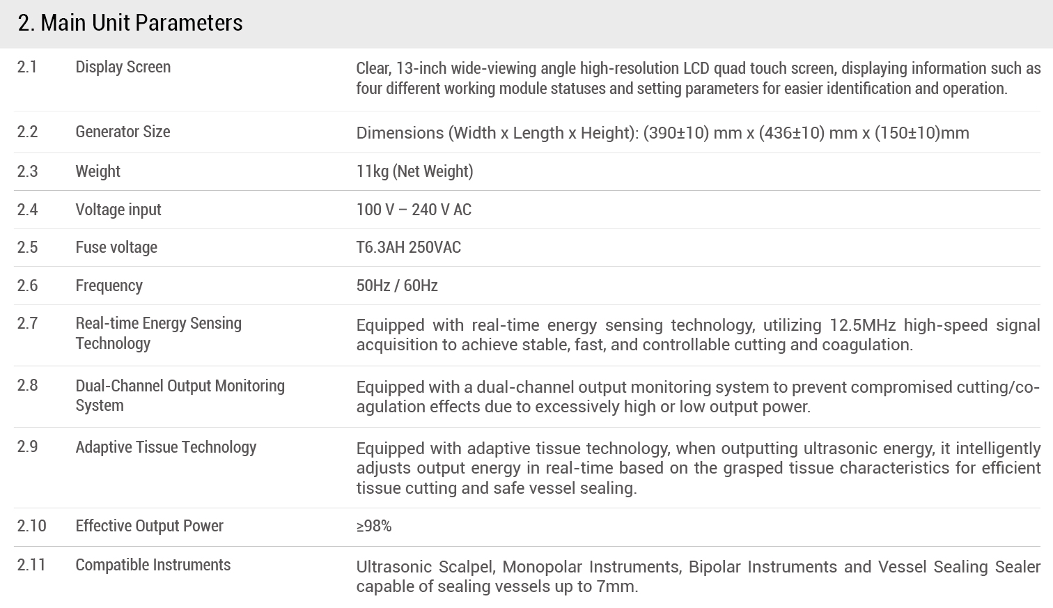 Intelligent device recognition: Supports multiple devices,including ultrasonic scalpel, electrosurgical pencil,laparoscopic electrode and bipolar coagulation forceps
